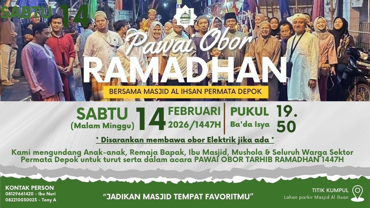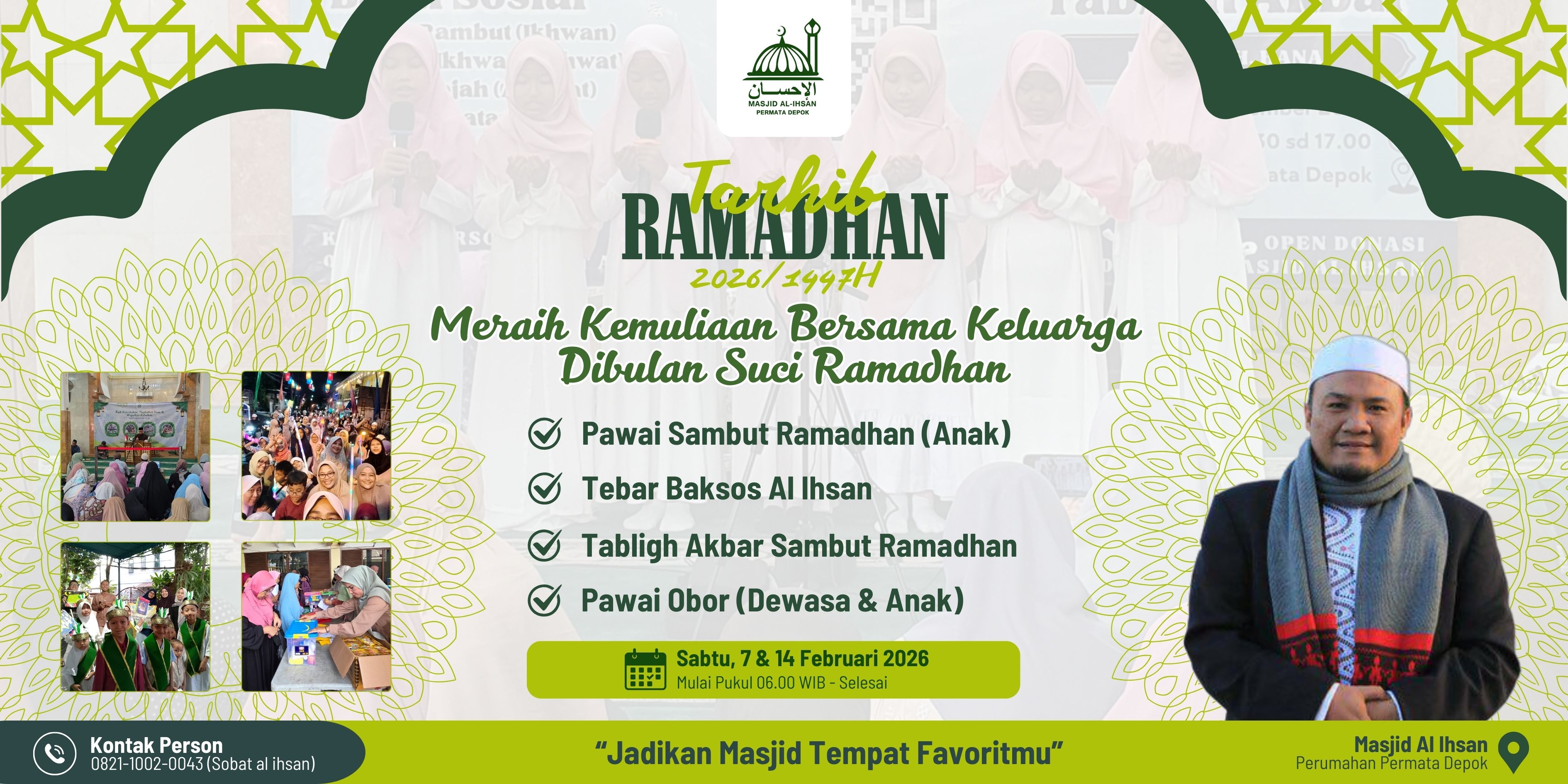 Alhamdulillah, kembali kita dipertemukan dengan bulan suci Ramadhan 1447 H, bulan penuh berkah, rahmat, dan ampunan. Melalui kegiatan Gema Ramadhan Masjid Al Ihsan Permata Depok, kami mengajak seluruh jamaah untuk bersama-sama menghidupkan Ramadhan dengan berbagai kegiatan ibadah, dakwah, dan sosial